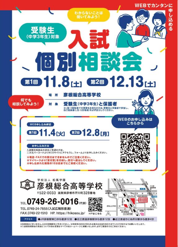 • 場所:彦根総合高等学校 校舎内(受付:生徒昇降口奥)