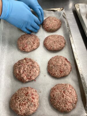 この取り組みは、肉博士による「近江牛」についての勉強会からスタート。そこから、試作→振り返り→改善を何度も繰り返し、調理科学をもとに“美味しさ”を最大限にするため、みんなで意見を出し合いながら、ようやく納得のいくネオハンバーグ@近江が完成しました。