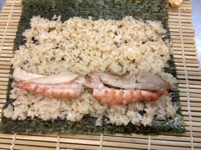 先日から楽しみにしていた「赤シャリの巻きすし」づくり。