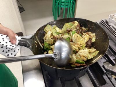 回鍋肉は先生と同じように野菜を切れるようになってきました。
