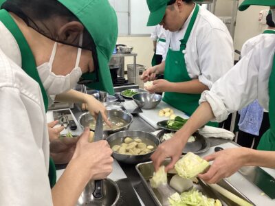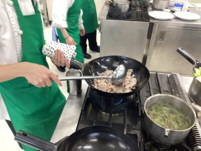 初めて作りましたが、なかなか美味しくできたと班で話して食べていましたが、先生が作った回鍋肉を