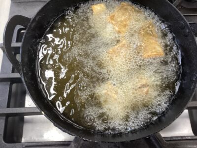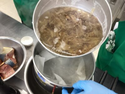 そしてメインの魚の立田揚げも自分たちで揚げて…